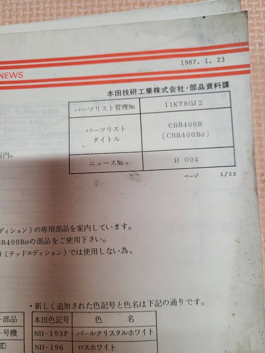 - CBR400Rパーツリスト 当時物 CBR400R パーツリスト CBR