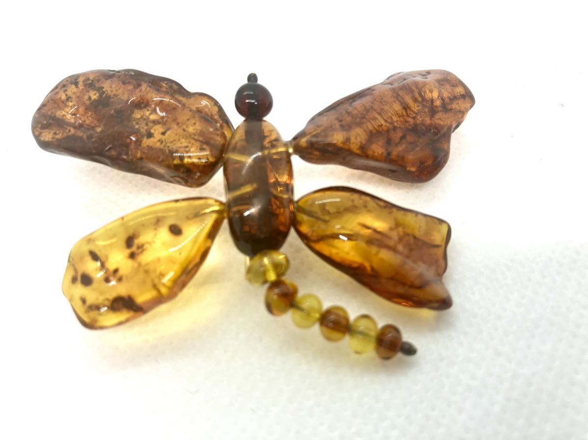 - 【新品未使用】リトアニア産天然琥珀ブローチ*手作り*一点もの*レア*希少*昆虫ブローチ*トンボ*縁起の良い*こはく*アンバー