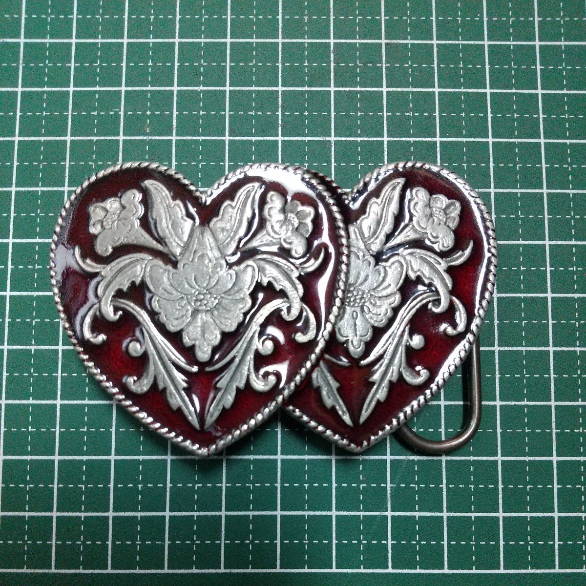 - バックル ハート 花柄 植物 非鉄 真鍮 USA製 ビンテージ ベルト