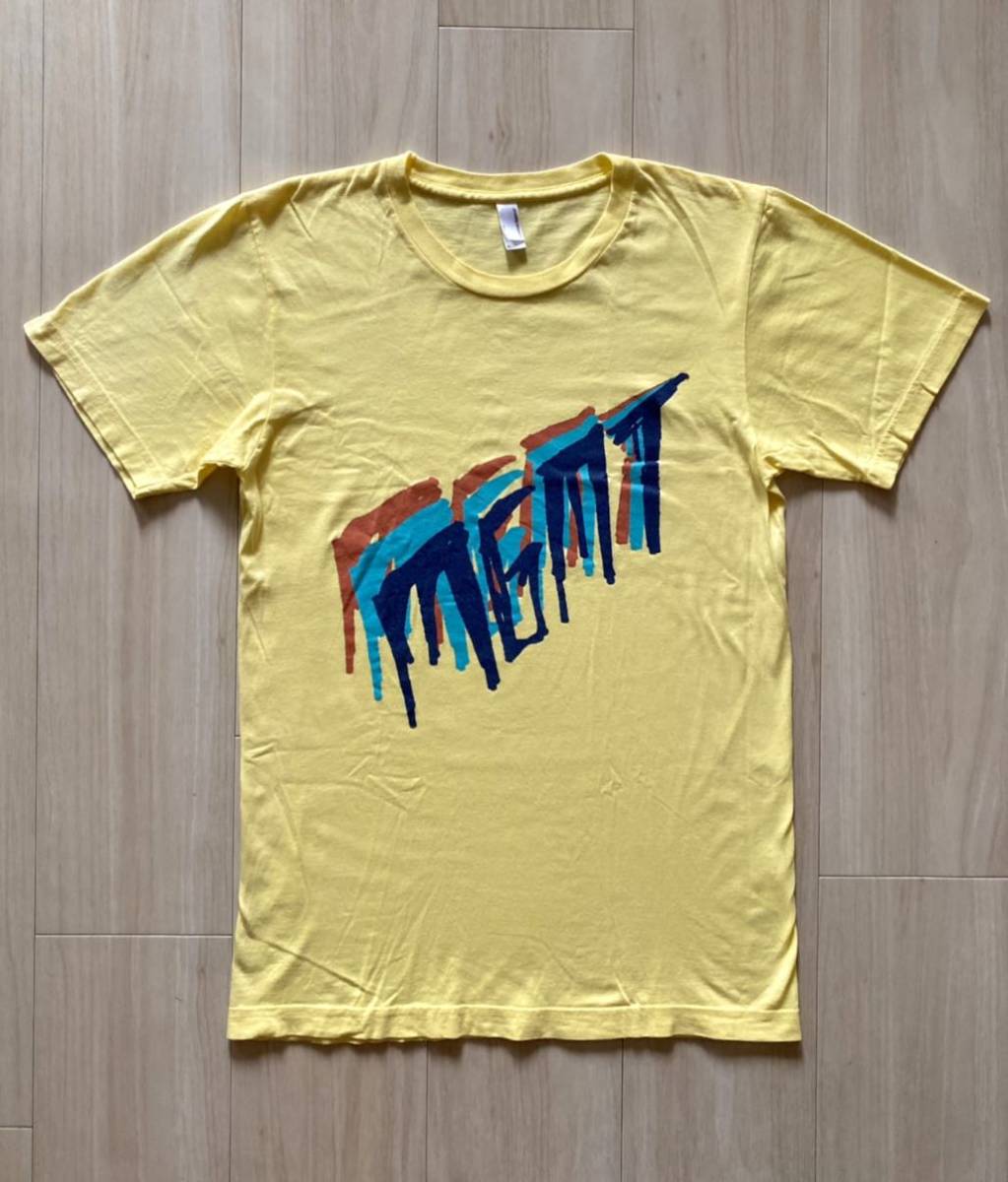 - MGMTロゴTシャツ■Sサイズ■2010年ツアーグッズ American Apparel ペールイエロー 半袖 Made in USA バンドTee ロック 海外アーティスト