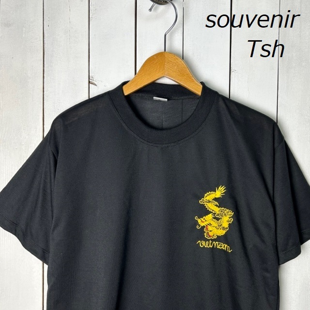 > JTP●69 美品 金龍刺繍 スーベニアTシャツ スカTシャツ ドラゴン L ベトナム 黒 コットン オールド ヴィンテージ