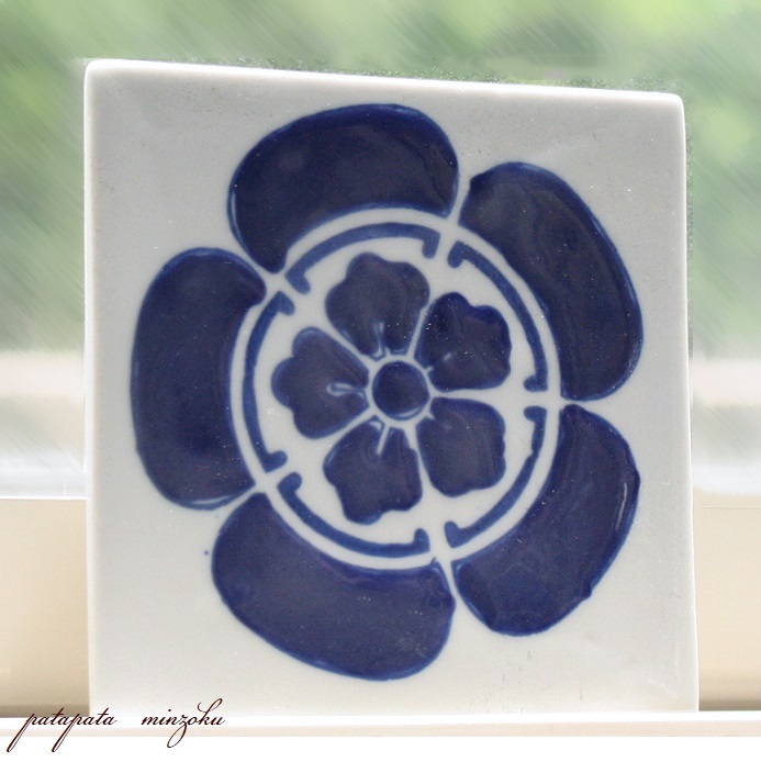 - 青花 デザイン タイル 織田信長 コースター 織田木瓜 木瓜紋 小鳥 雑貨 小物