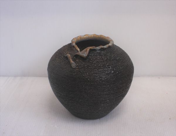 > 陶器の花生け 花器 壺 フラワーベース 茶 サイズ:外径22×H21㎝ /19N4.6-28