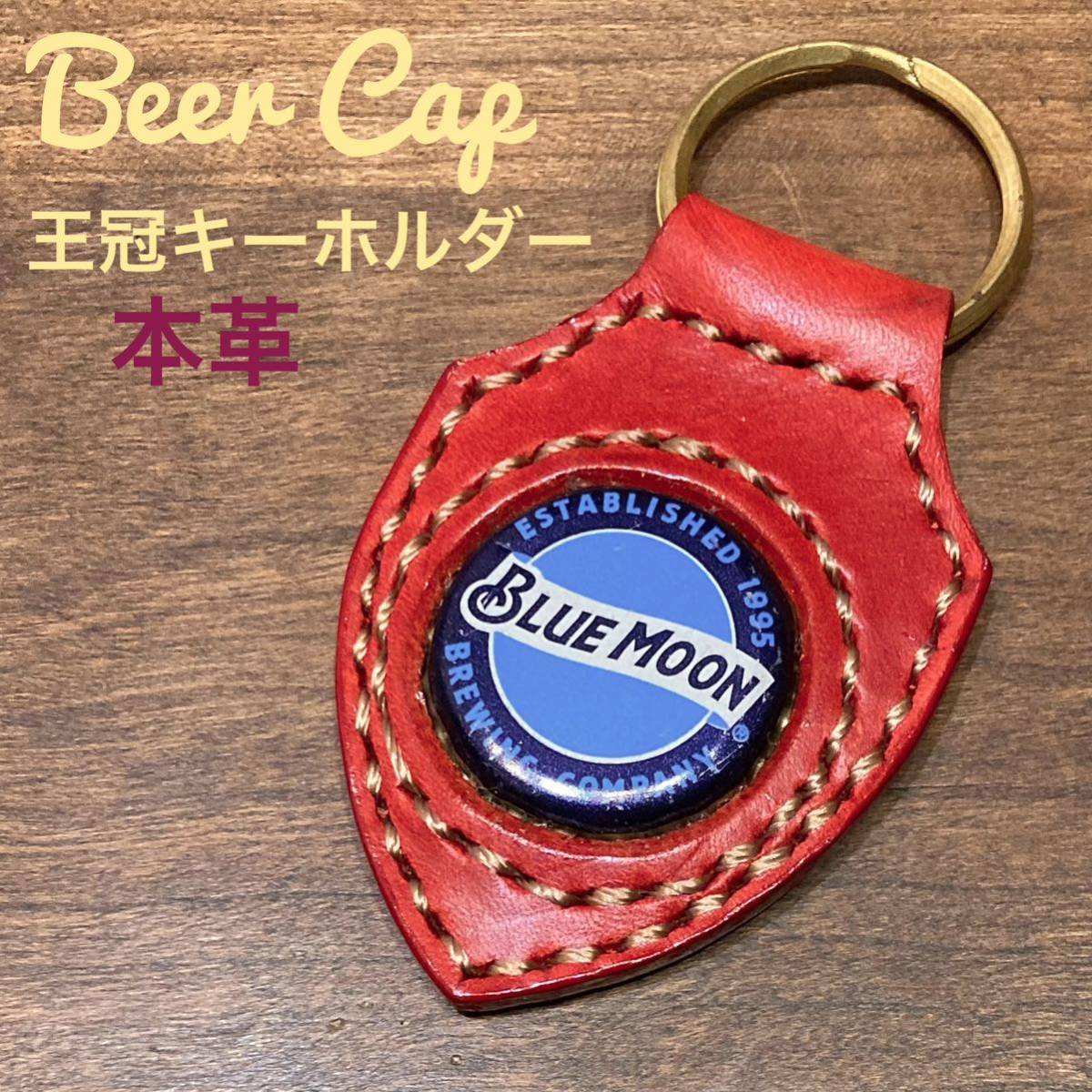- [本革] ビール王冠 キーホルダー Beer cap クラウン ブルー・ムーン