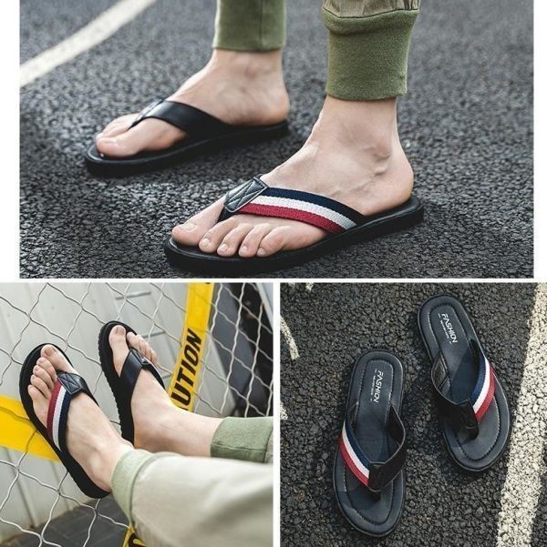 > 【黒 26-25.5cm】【sa20】 サンダル メンズ おしゃれ PU 革 合皮 シンプル ビーチサンダル アウトドア キャンプ 海 夏 黒 2