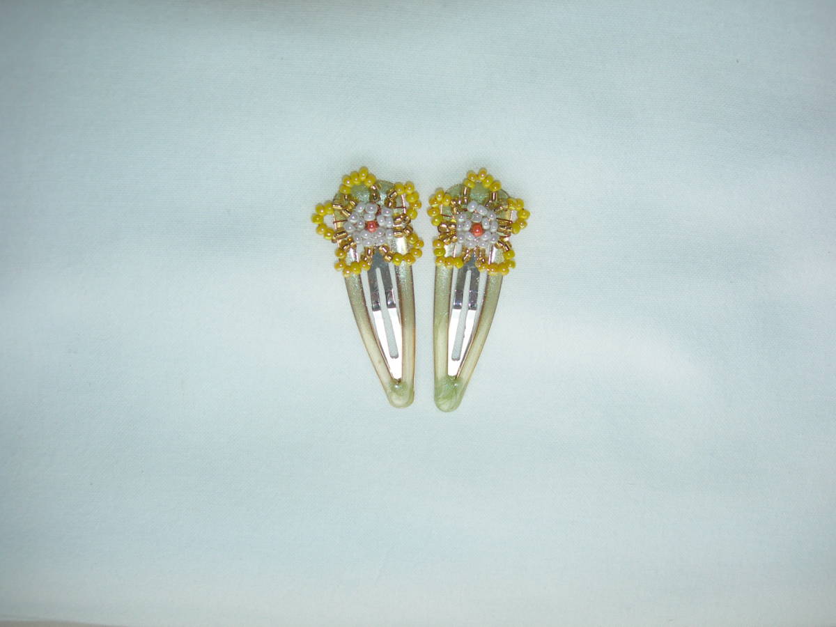 - ビーズヘアピン イエロー ハンドメイド 未使用新品