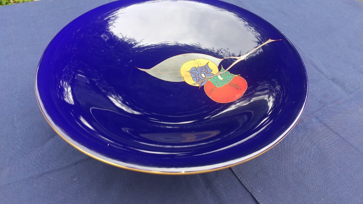 - 昭和50年代 香蘭社 高台皿 コンポート 瑠璃柿文