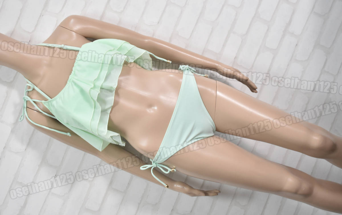 - NON トップス付き レイヤード セパレート水着 ビキニ ライムグリーン サイズ11L