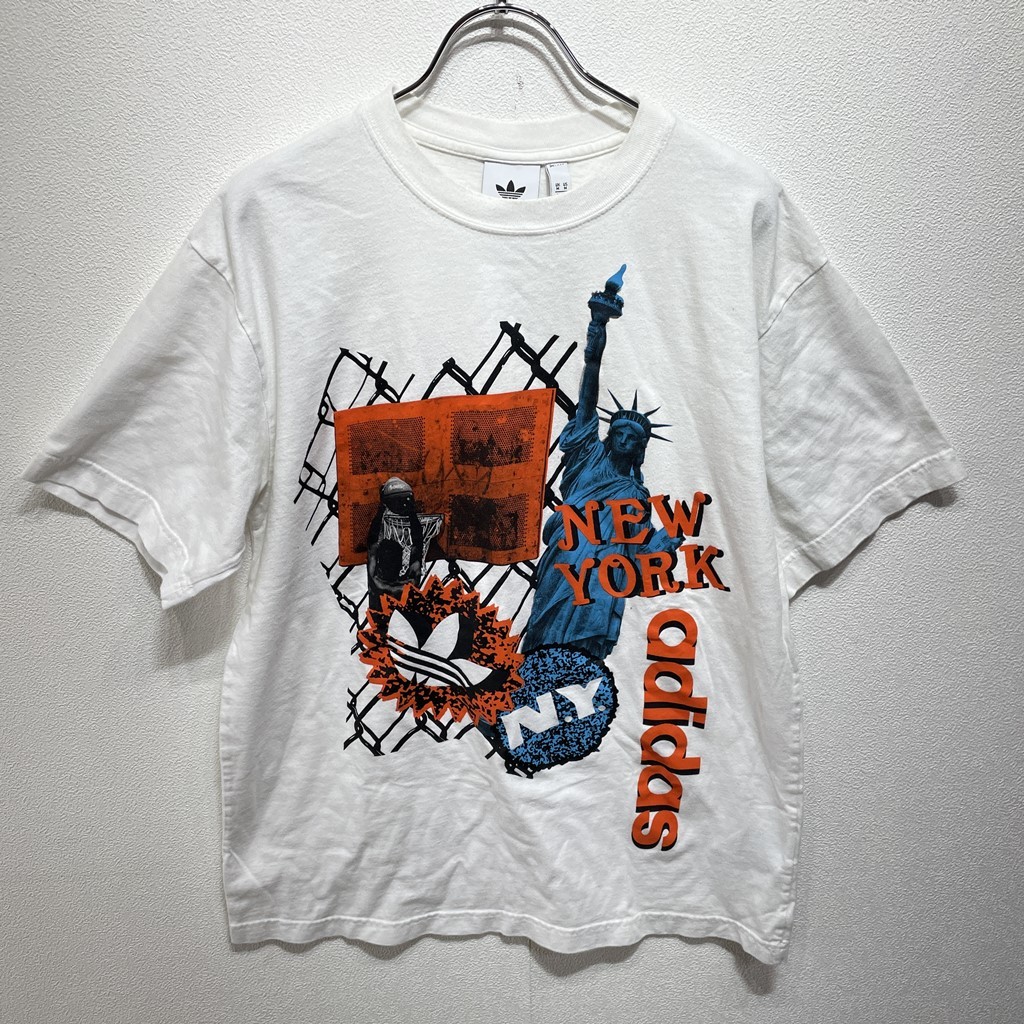- adidas/アディダス デザインTシャツ 白/ホワイト メンズO ビッグロゴ NY トレフォイル 注目度NO1K2863