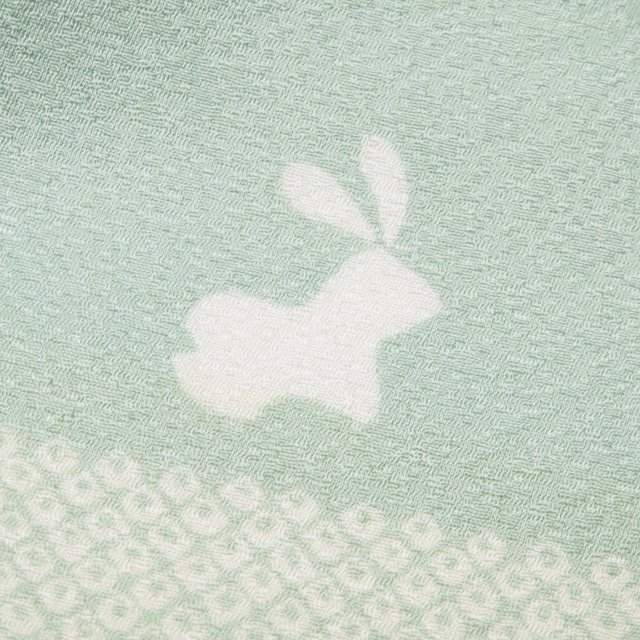 - 小紋 着物 未使用 正絹 袷 カジュアル 鹿の子模様 兎模様 うさぎ ウサギ 白緑色 身丈160cm 裄61cm M きもの北條 A892-2