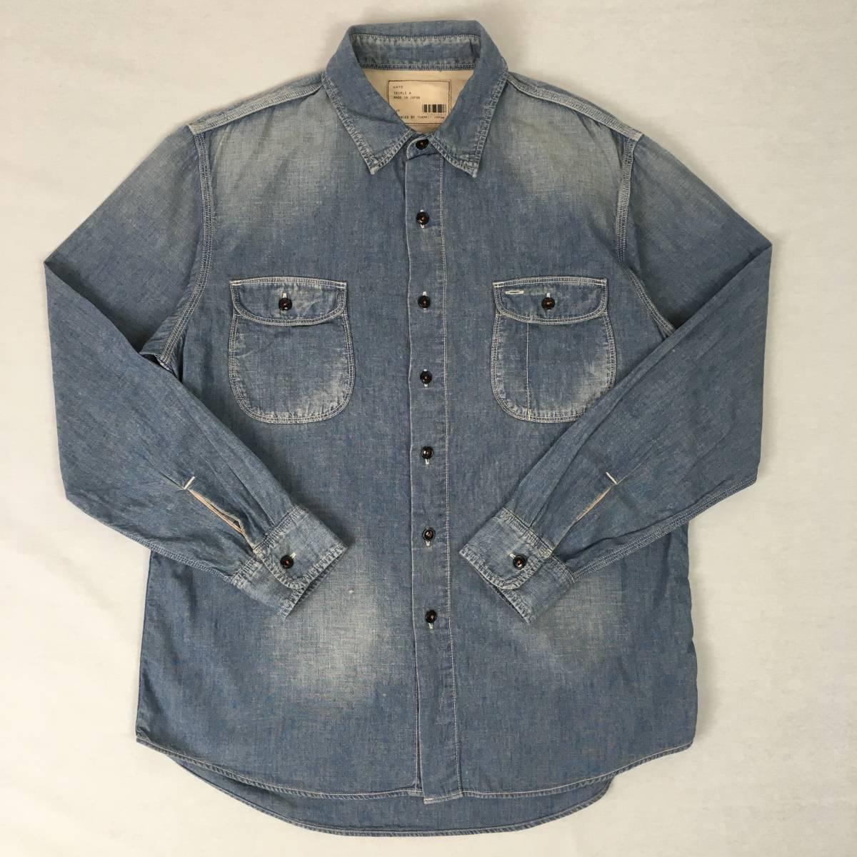 - KATO' カトー ASJ081 日本製 シャンブレー ワーク シャツ Mサイズ 長袖 猫目ボタン ユーズド加工