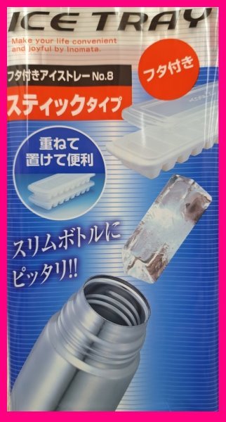 > 【1点:スティック氷 製氷皿】★口の狭いペットボトルを速攻冷却:1皿(8個取り):日本製:フタ付アイストレー:新品