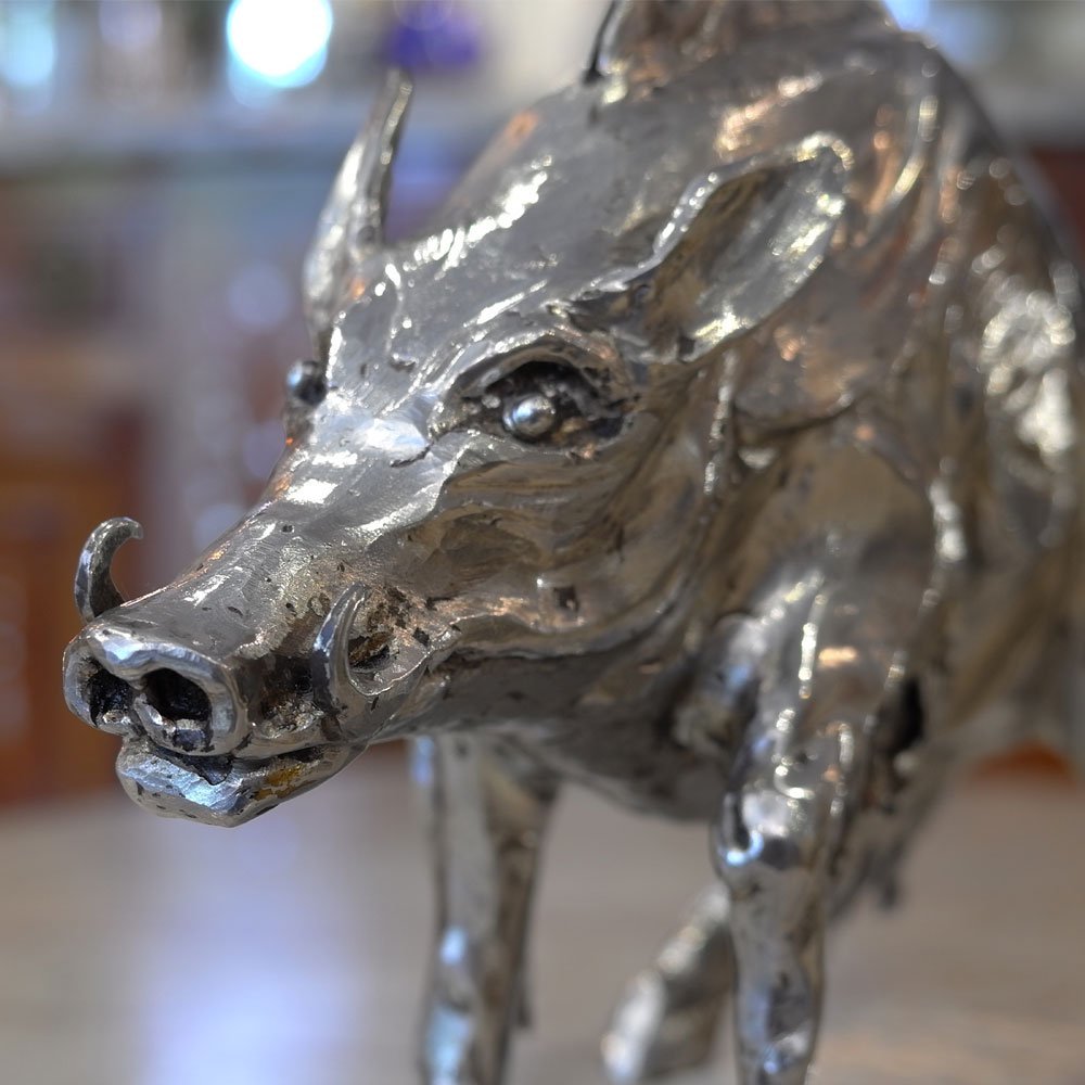 - 【金属彫刻家François Lavrat作 イノシシのオブジェ】フランスヴィンテージ置物 飾り 89年 鉄アイアン アートインテリア パリ