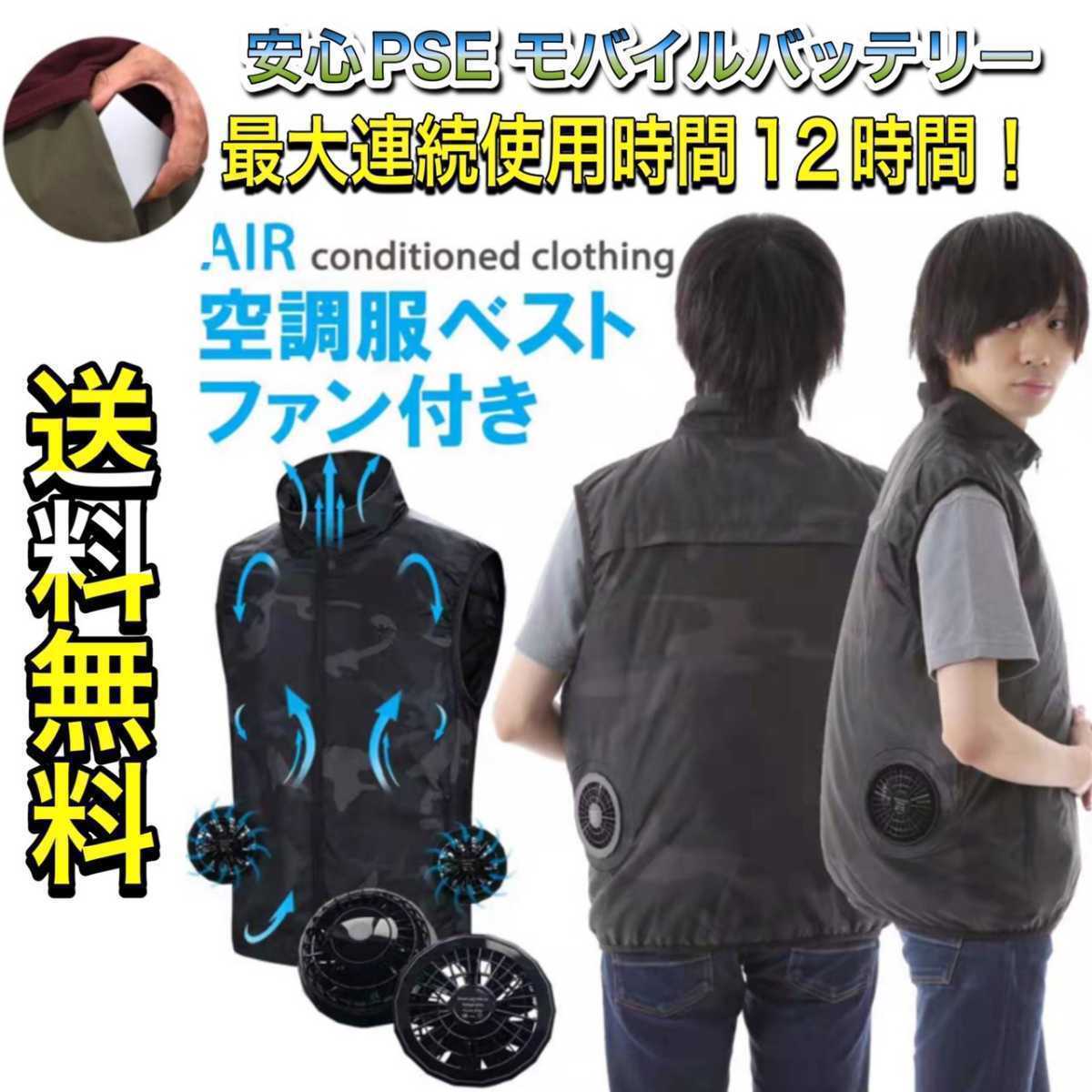 - 新品 空調服 バッテリー ファン フルセット 迷彩 カモフラ柄 空調ベスト Mサイズ 11