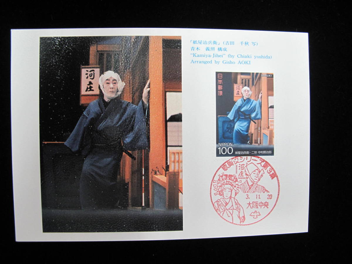 - MC 歌舞伎シリーズ 第3集 紙屋治兵衛 全日本郵便切手普及協会 マキシマムカード 初日印