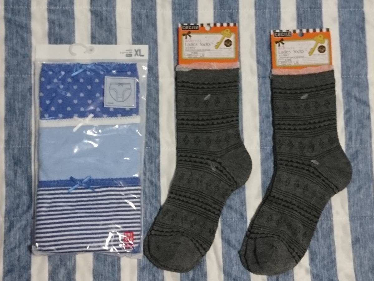 - 3点セット UNIQLO ユニクロ ショーツ XL 150cm 3P ガールズ ブルー ストライプ ハート 水色 無地 & 2足セット ソックス 23~25cm グレー