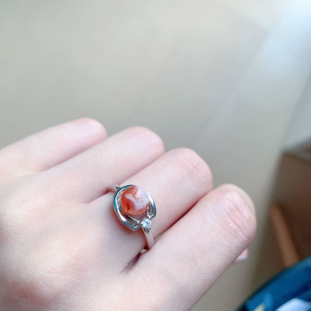 - ◇桜瑪瑙◇指輪◇リング◇フリーサイズ◇チェリーブロッサムアゲート◇天然石◇パワーストーン◇巾着袋つき◇プレゼントにも022R7267