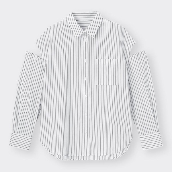 > GU ジーユー 2WAY ストライプ オーバーサイズシャツ 長袖 Mサイズ オフホワイト