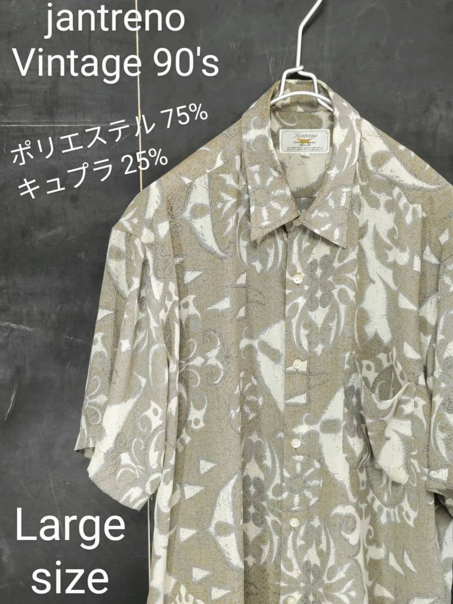 > ★送料無料★ jantreno 90's ヴィンテージ ポリシャツ 柄シャツ デザインシャツ オーバーサイズシャツ Large