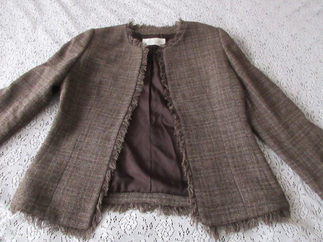 > N)■日本製ブランド品■【ブレヴァザーラ BREVA ZARA】■ヨーロッパ製生地/毛70%■アウトラインに房デザイン!素敵な着痩せジャケット