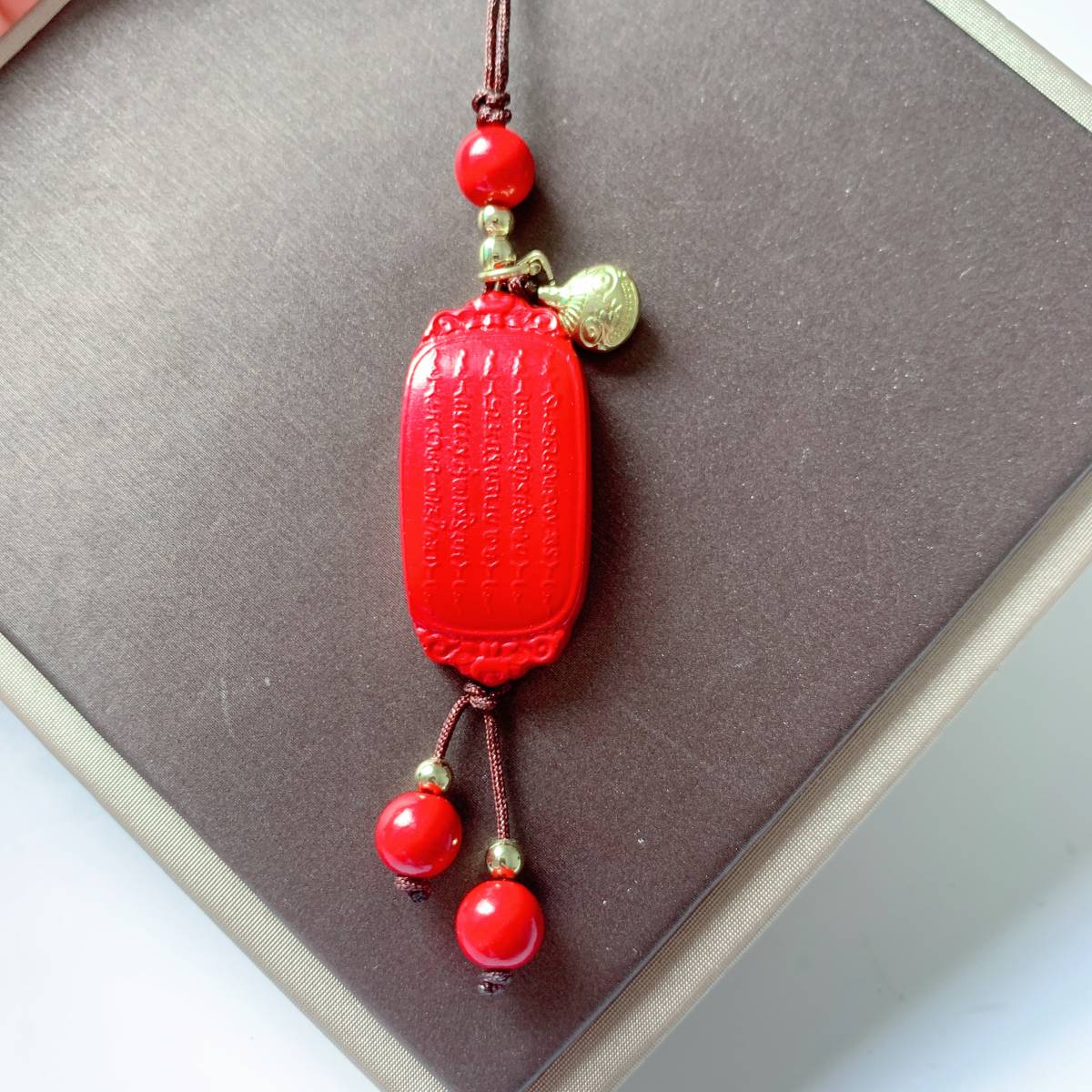 > ◇バッグチャーム◇シナバー(辰砂)◇蓮花五条経文◇パワーストーン◇キーホルダー◇飾り物◇車内アクセサリー◇巾着袋付き◇プレゼントにも