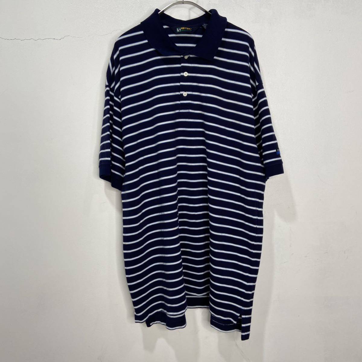 - 送料無料☆90s☆EddieBauer☆EBTEK☆ボーダー柄半袖ポロシャツ☆紺☆XL