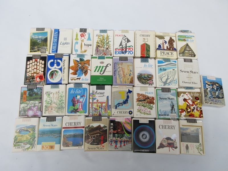 - たばこ 空箱 [煙草パッケージ ]■70年代 昭和 図変り [記念 日本万博 祭り 城 兜 観光地 他]コレクター ビンテージ まとめて紙箱 №8986■