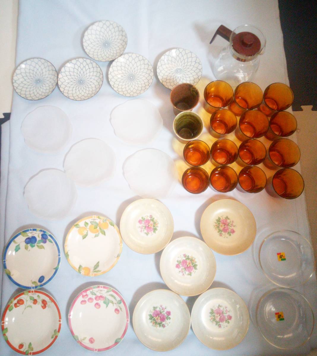 > (G)食器セット②茶色コップ 14個 陶器コップ 2個 花柄ソーサー5枚 葉の形皿5枚 有田焼5枚アサヒ器2枚 ungro4枚 ティーポット1つ
