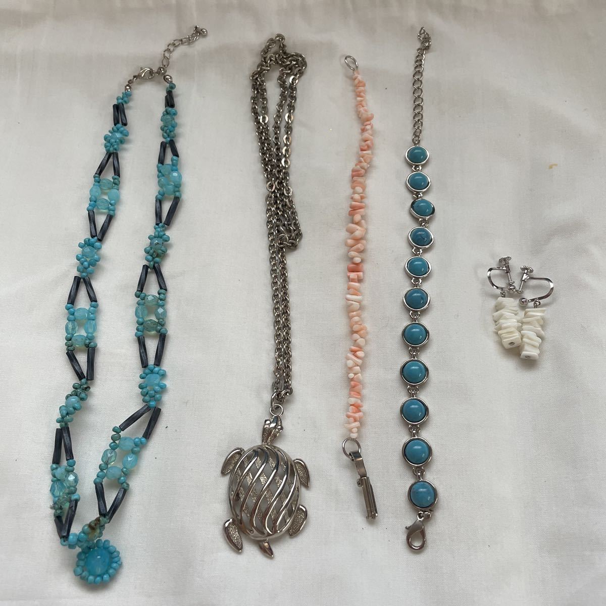 - ネックレス ブレスレット イヤリング カラーストーン サンゴ カメ まとめて5個