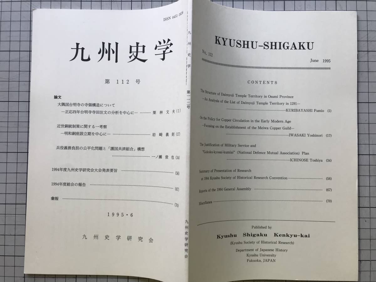 > 『九州史学 第112号』大隅国台明寺/一ノ瀬俊也「兵役義務負担の公平化問題と「護国共済組合」構想」 他 九州史学研究会 1995年刊 08343