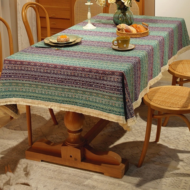- テーブルクロス 長方形 布 おしゃれ リネン アジアン 大判 厚手 幾何学 高級感 ストライプ カラフル ジャガード織 フリンジ