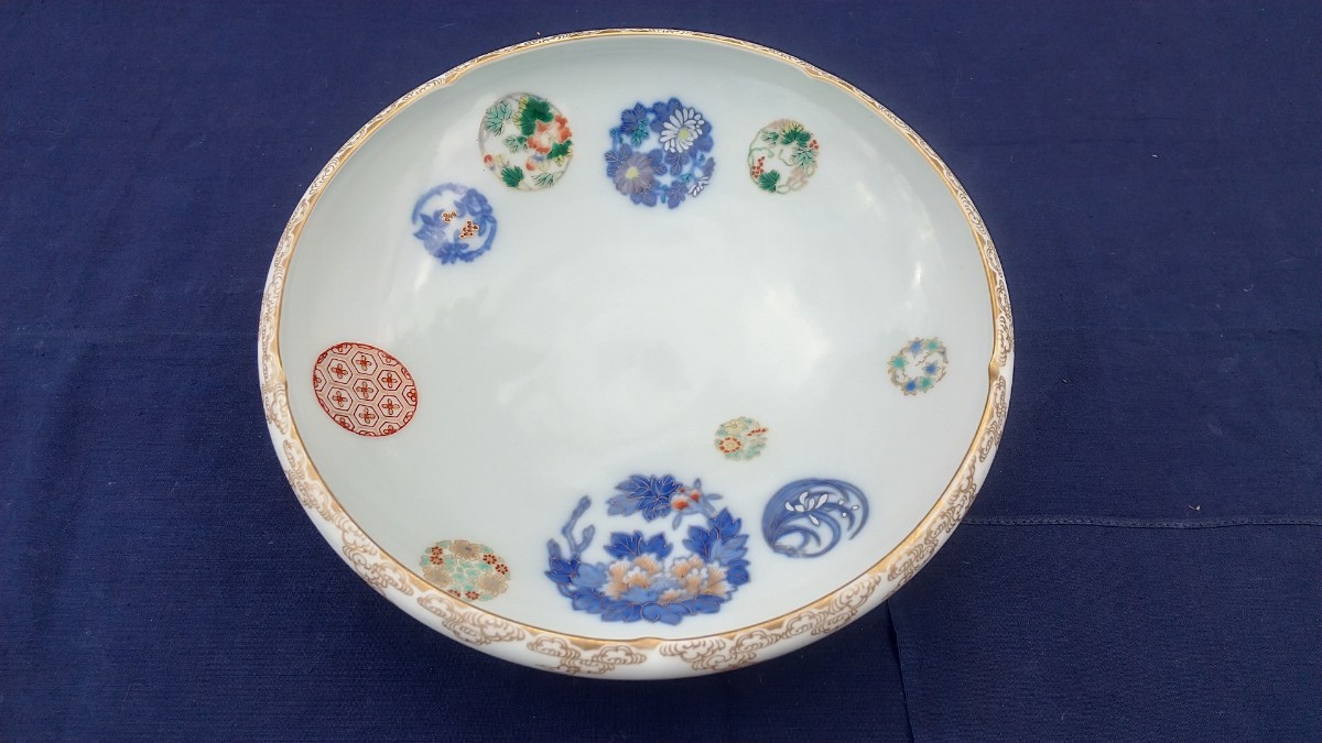 - 大正~昭和初期 オールド深川 染錦花丸紋 菓子器 深川製磁