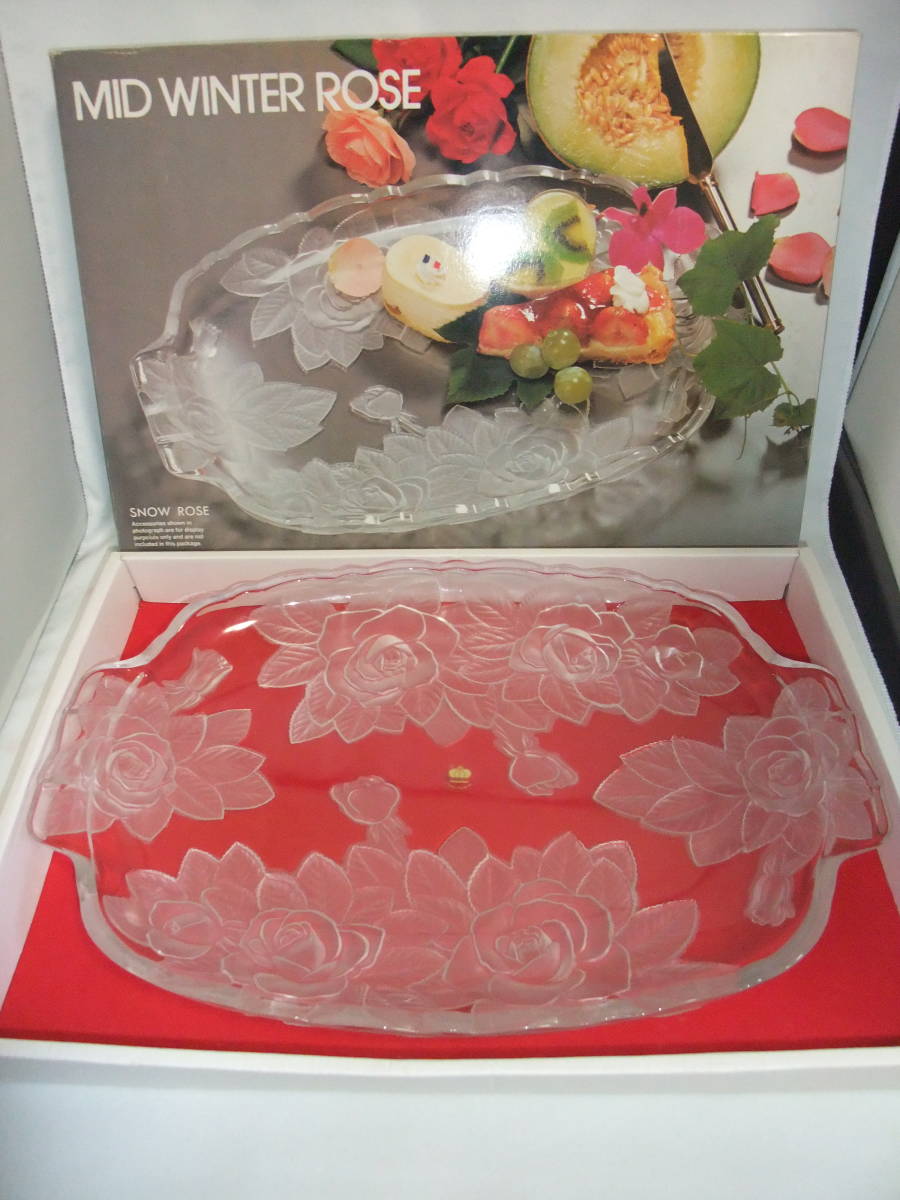 - RICCARDO リカルド ガラスエッチング フルーツ皿 デザート皿 盛皿 大皿 バラ ローズ 曽我ガラス