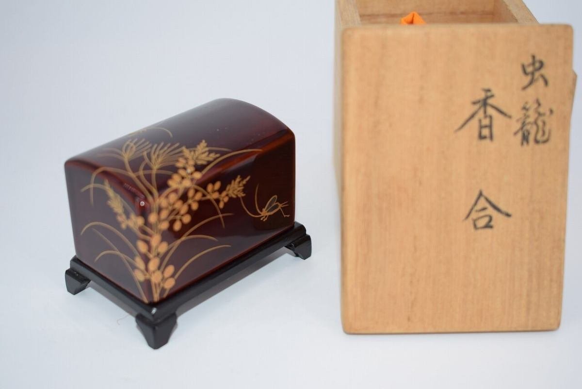 - 茶道具 溜塗 秋草蒔絵 虫籠 香合 北村 葵春 作 桐箱入り 茶道 t 9304649
