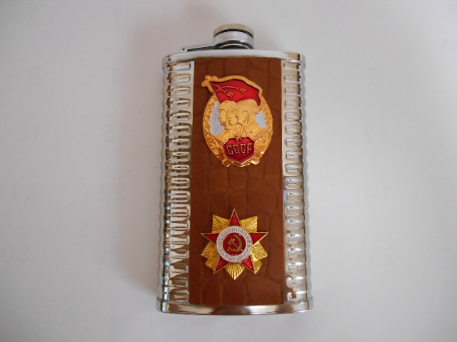 - ロシア ソ連 スキットル ヒップフラスク 6oz CCCP 鎌と槌 ステンレス 茶 11510