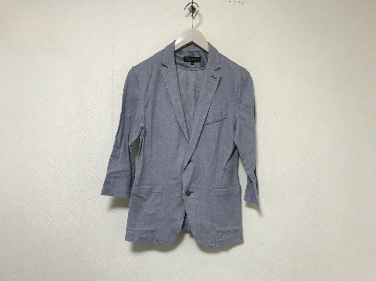 > 本物ミッシェルクランオムMICHELKLEIN HOMMEコットン7部丈袖テーラードジャケットメンズアメカジサーフビジネススーツ青ブルー46M
