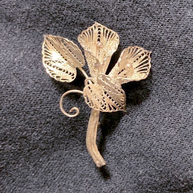 - h86)カラー 花 フィリグリー 銀線細工 ブローチ バッジ シルバー 純銀 ビンテージ ジュエリー アクセサリー