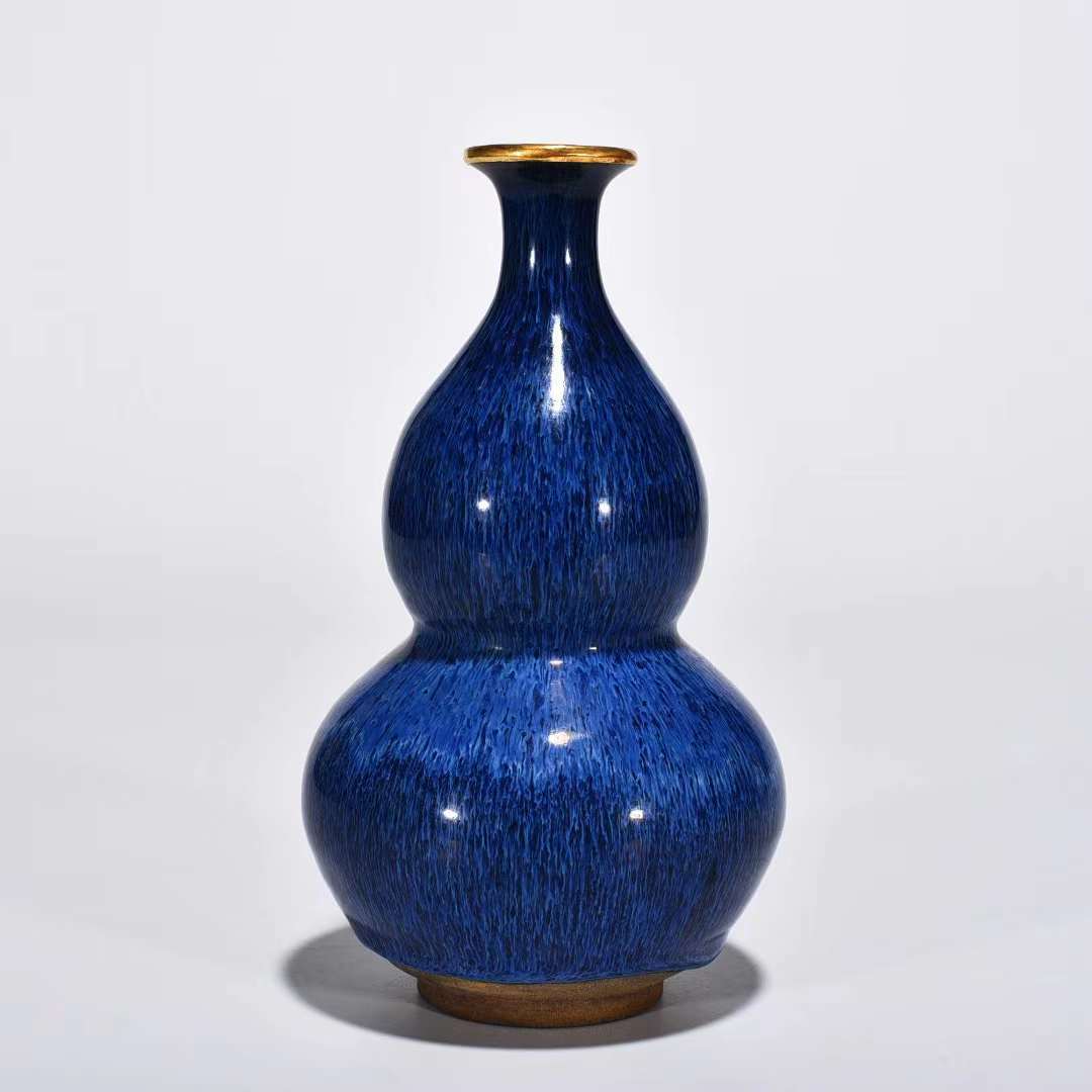 - 宋時代 建窯 曜変 藍毫 觚形瓶唐物 中国美術 工芸品 高さ19cm 直径10.5cm 【HB661】