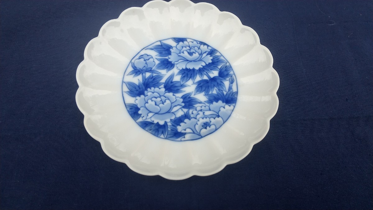 - 推定大正~昭和初期 オールド深川 菊割り牡丹見込み皿 深川製磁