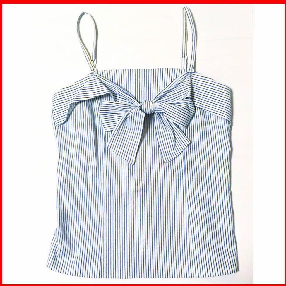 - スーツ 紺 青 白 ストライプ ボーダー リボン キャミソール ベアトップ 2way インナー チューブトップ オシャレ ハイクオリティ シャツ
