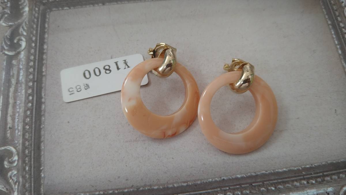- 未使用 ピンクベージュ×白MIX リングデザイン イヤリング