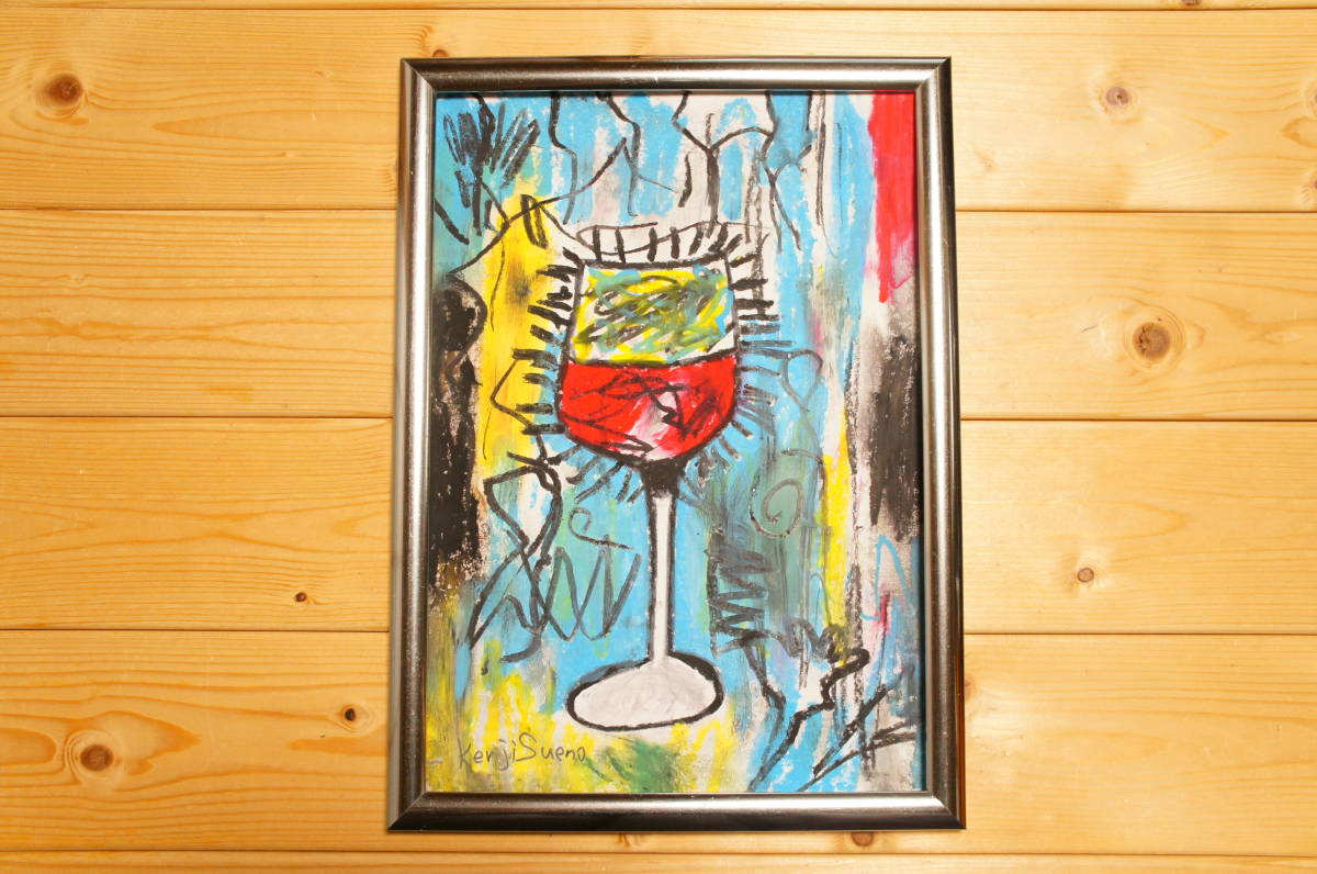 - 【ワイン】手描き 肉筆 クレヨン画 静物画 絵画 A4サイズ 655,Crayon painting, oil pastel painting, original art,グラス