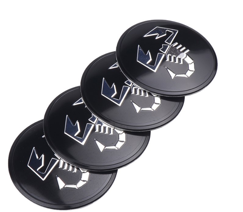 > ABARTH 黒銀 56mm 4枚セット ステッカー ホイールキャップ 595 124 500 695 プント