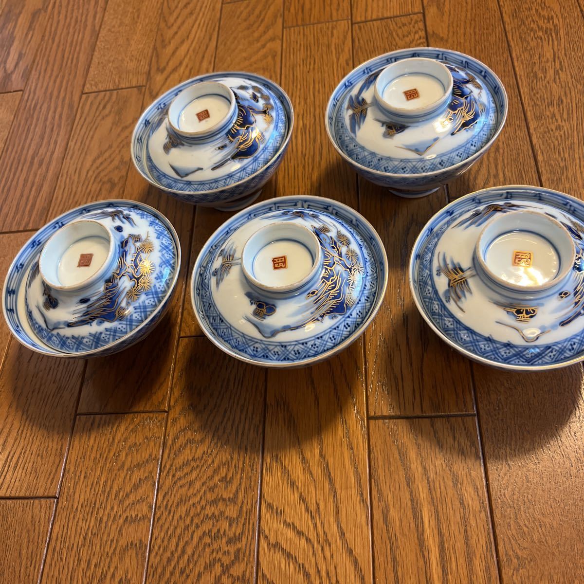 - 最終処分特価 時代がある蓋付き茶碗五客セット 肥 落ち着いた味わい