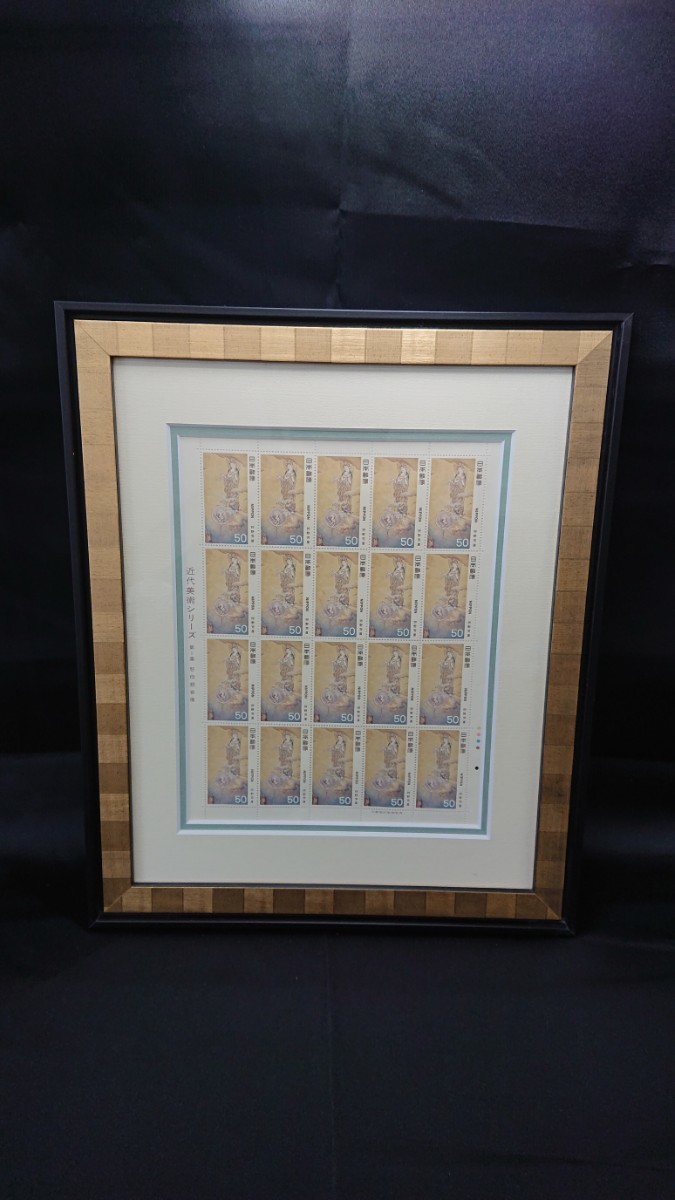 > No.100 日本郵便 近代美術シリーズ 第1集 悲母観音像 狩野芳崖 大蔵省印刷局製造 50円切手20枚 額縁入り