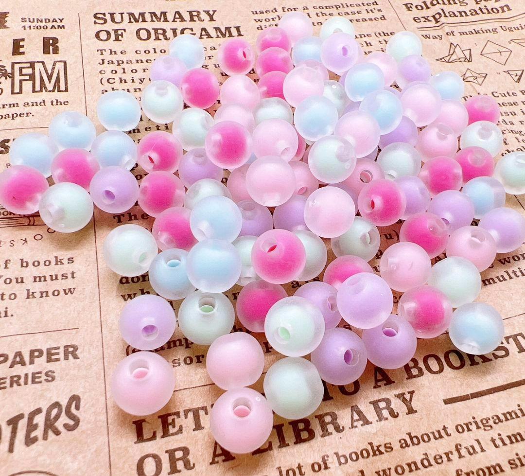 - 8mm艶消しビーズ [ランダム100粒] デコパーツプラパーツ ハンドメイド素材