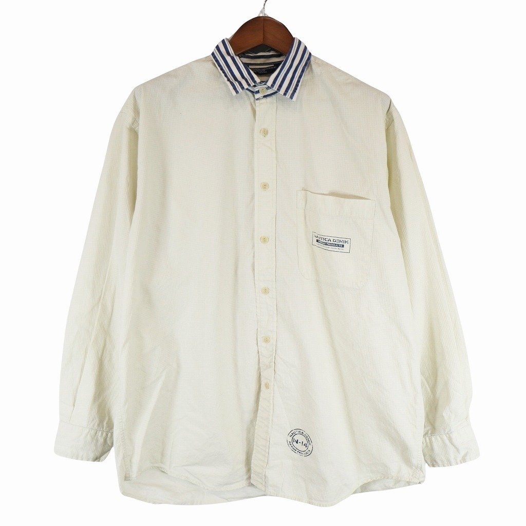 - NAUTICA ノーティカ 長袖シャツ 襟ストライプ ホワイト (メンズ L) 中古 古着 O5243