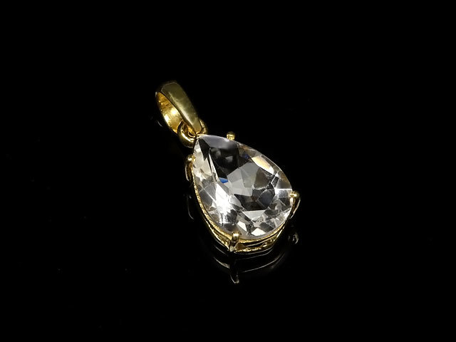 - 天然水晶 クリスタルクォーツ ペアシェイプファセットカット ペンダントトップ 12×8mm[18KGP]【1コ販売】 / 60-13 CQ12PT