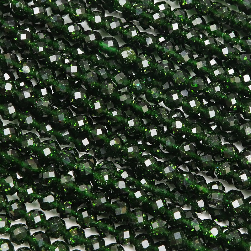 - グリーンゴールドストーン 面カット 丸玉 3mm[プレミアムカット]【1連販売】 / 7-18 GS3MC