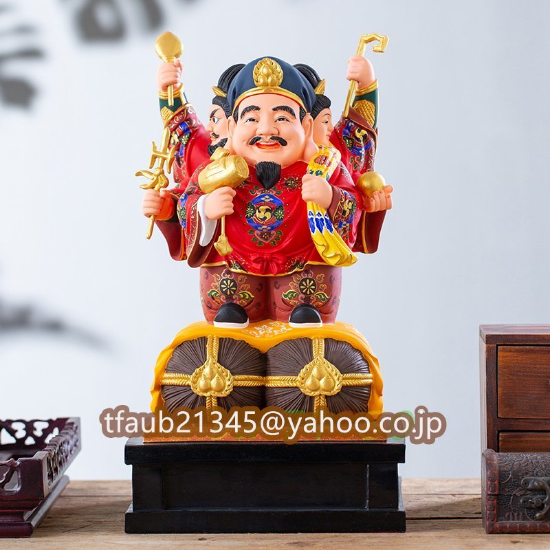 - 「密教法具 寺院仏具」極上品 財神 福神 三面型 彩色大黑天立像 仏教芸術品 高さ39cm